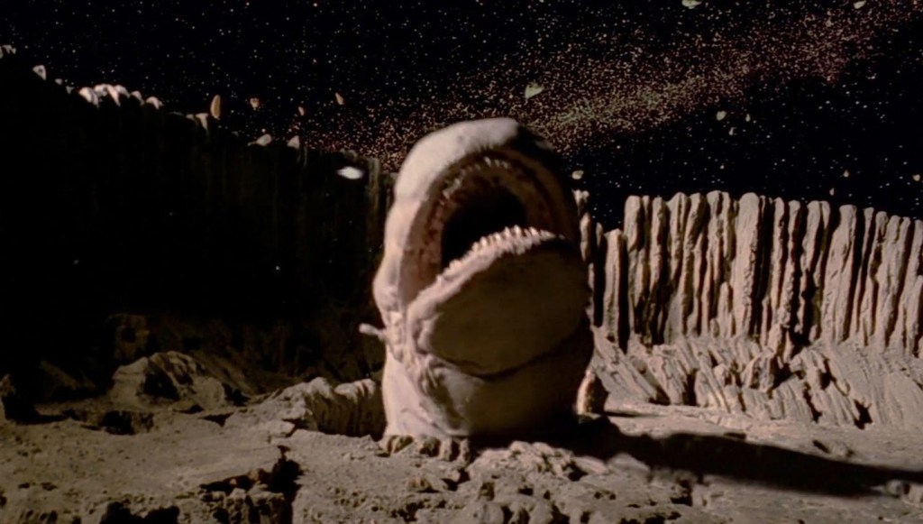 As a counter-point to Hoth, the chase scene through the asteroid field is almost more subdued, focusing more on the character reactions to the situation, rather than the action taking place around them. Hiding the Falcon inside the asteroid worm (I’m sorry for not looking up the creature’s name, is it Fred?) serves as another opportunity for dedicated character interaction and growth (see kissy kissy in the Falcon’s maintenance area). It’s an amazing set of scenes and still gets my blood pumping to this day.