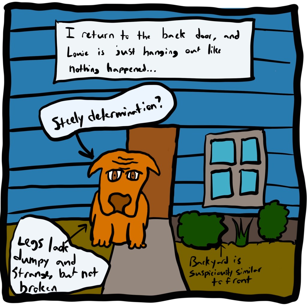 Hey everyone, I know, it’s been a hot minute since Part 2. In the interim, I was working on a novel, and getting used to some new drawing software, but now I’ve got some time to get back to comics! So, here it is, My Dog Louie, Part 3, THE FINAL CHAPTER.